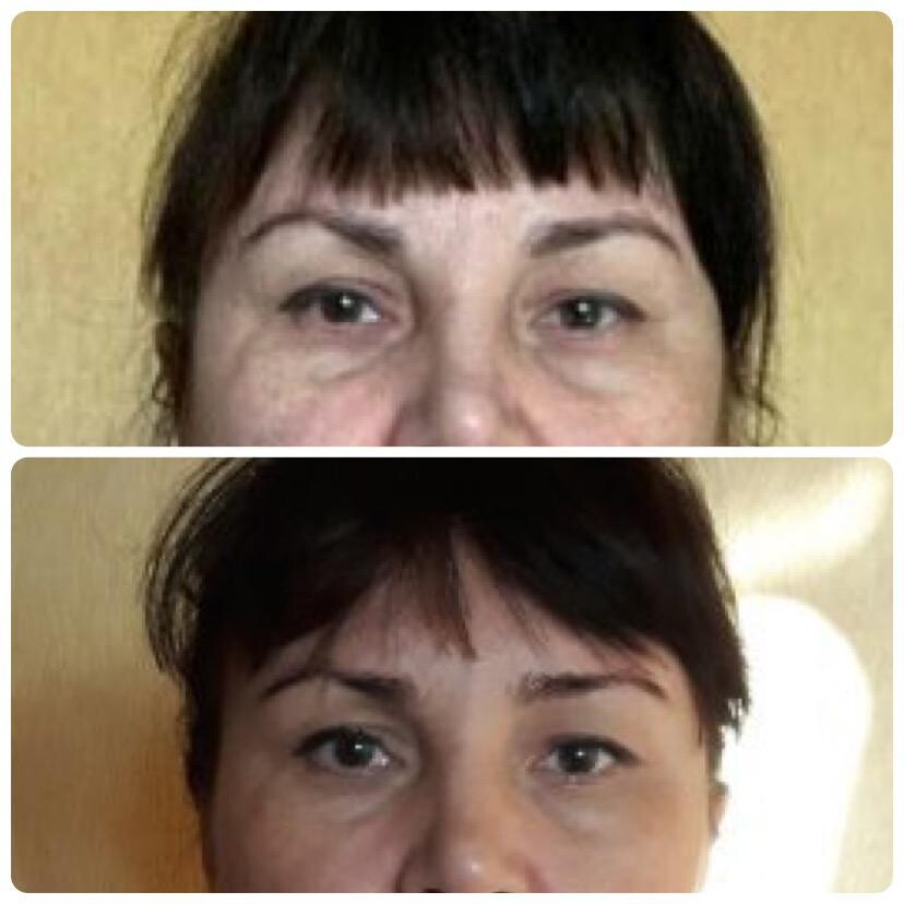 Работа с такими проблемами как: отек глаз, нависающее верхнее веко, морщины вокруг глаз, гусиные лапки, носослезная борозда.